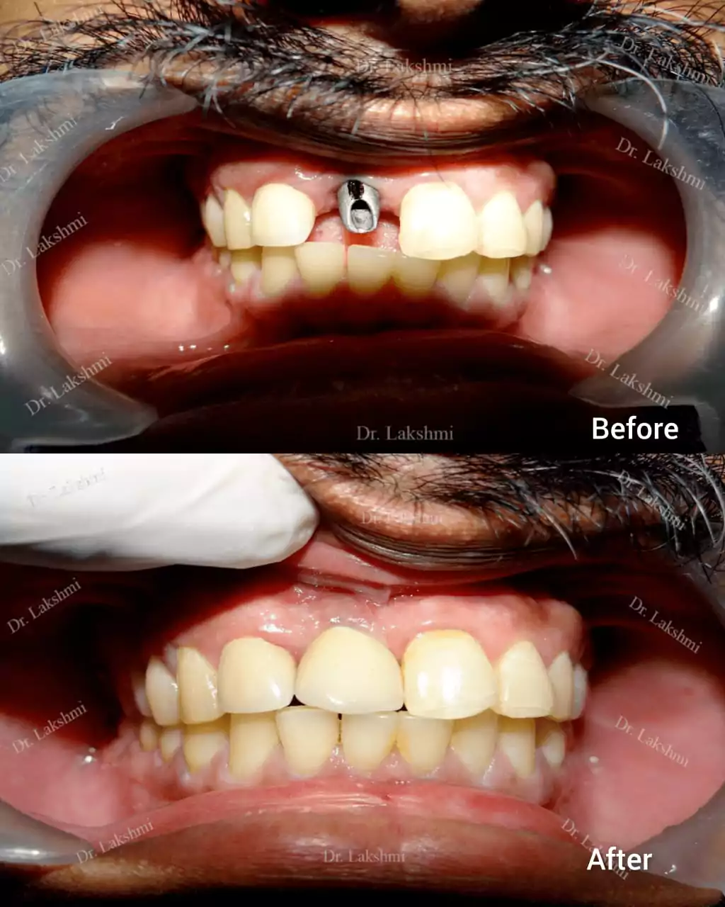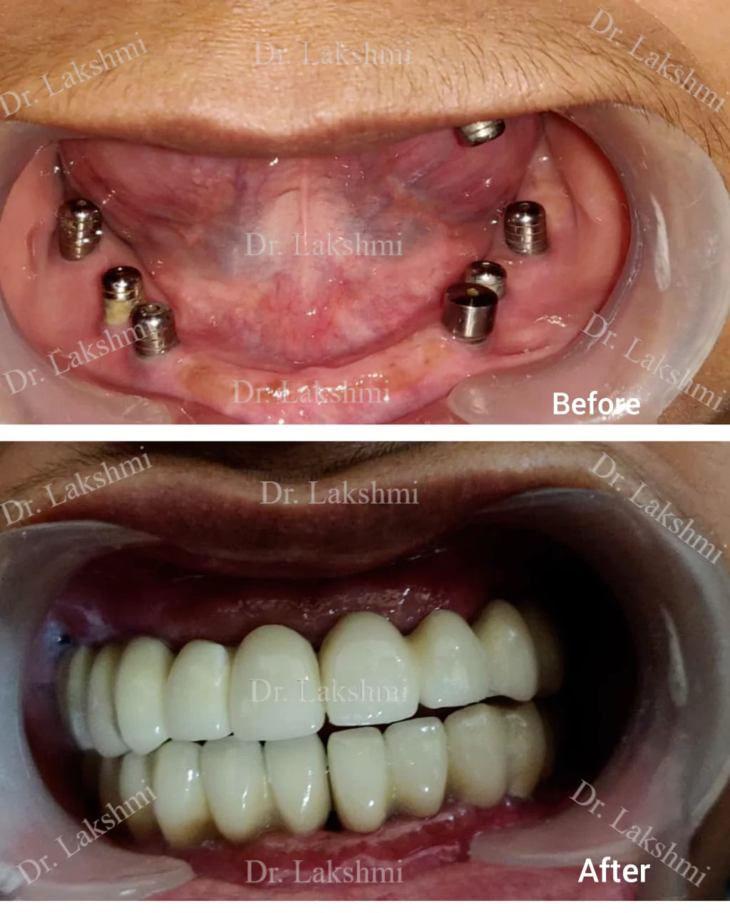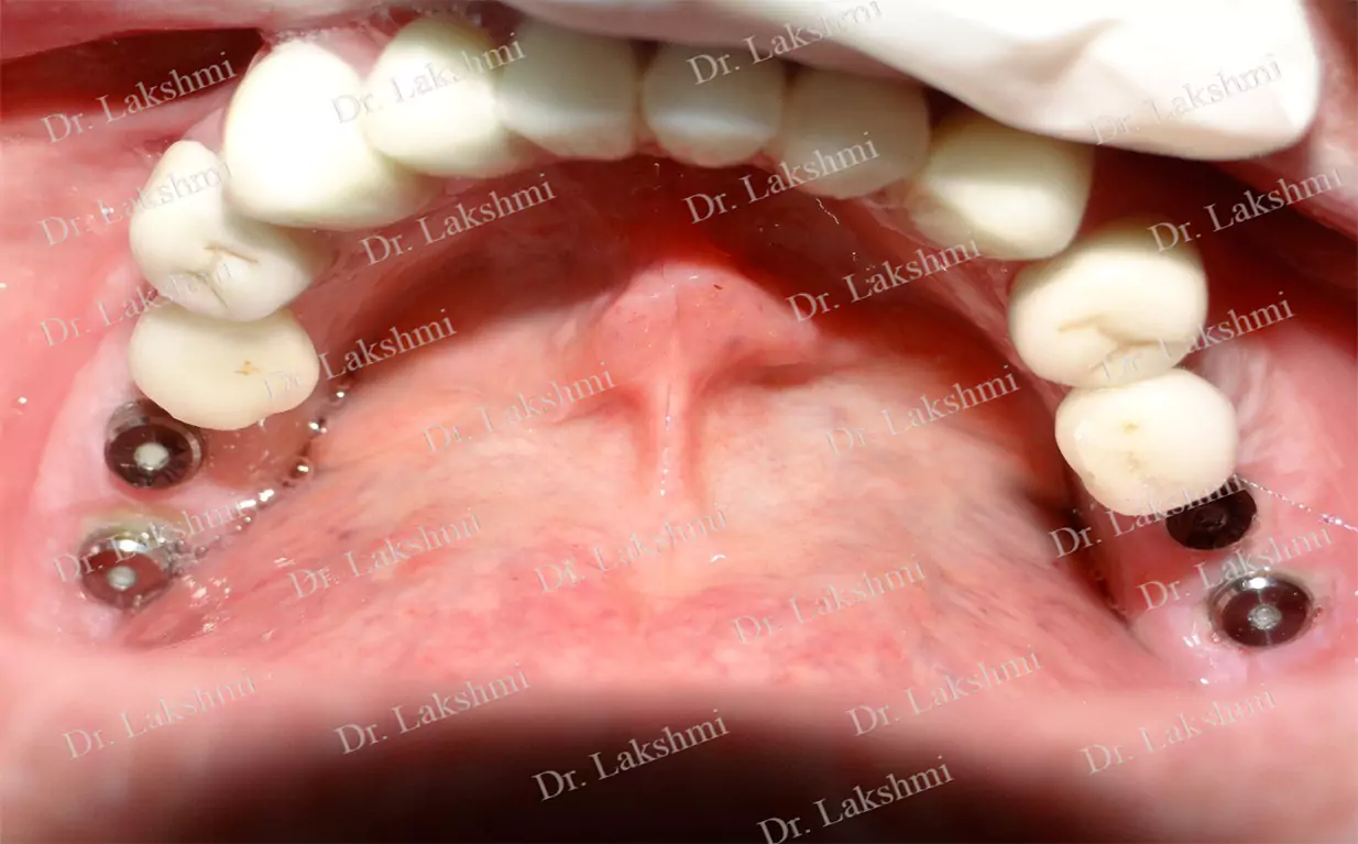 Multiple Tooth Replacement : Entirely depends on number of missing teeth.Either same number of Implants or fewer number of Implants than missing teeth can be placed. For example patient with 4 missing teeth ,we can place 2 Implants followed by a 4units bridge.