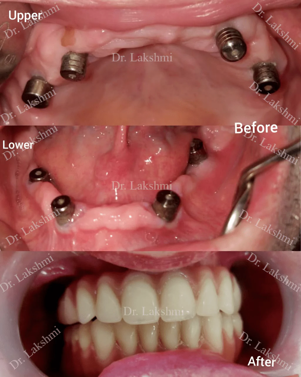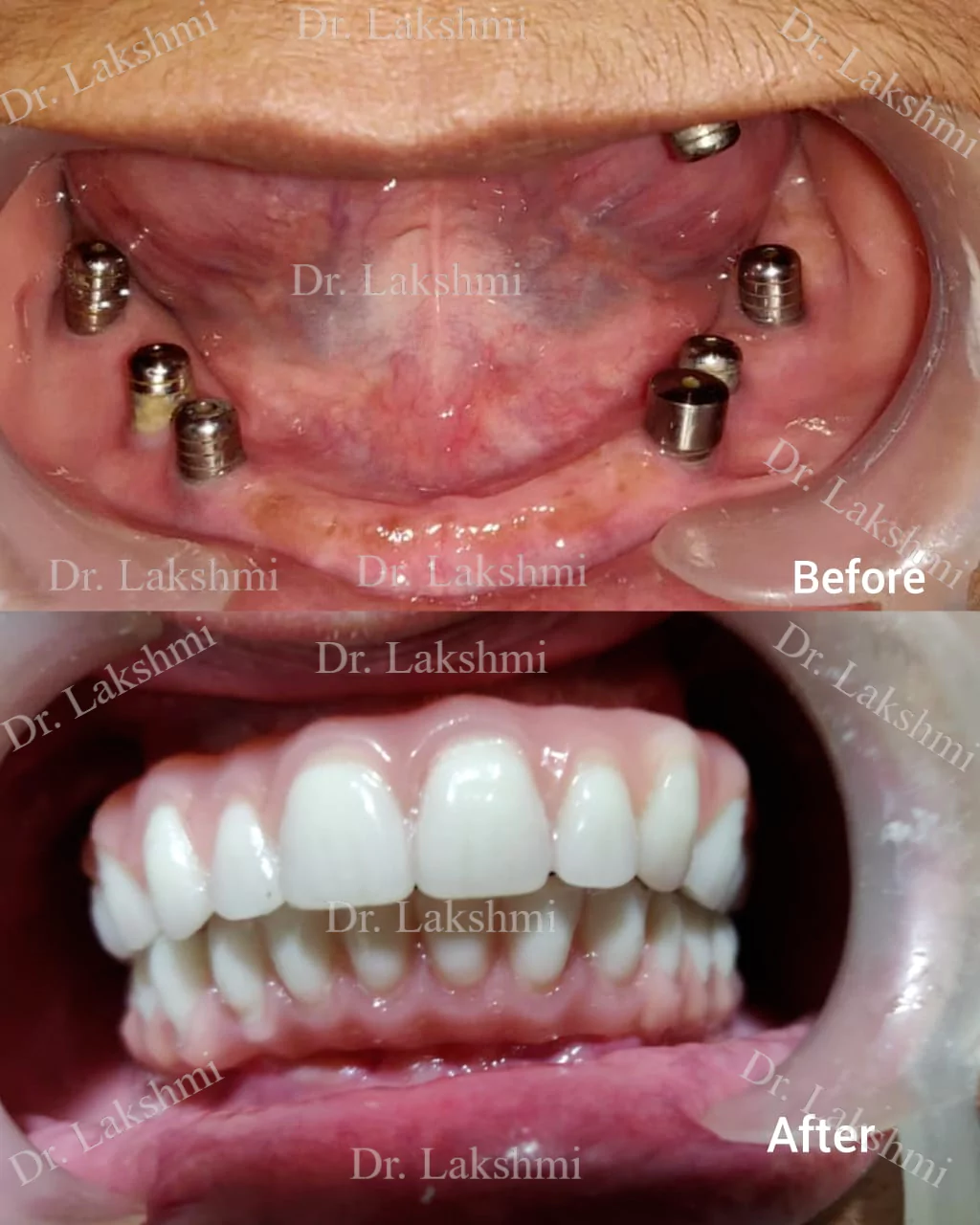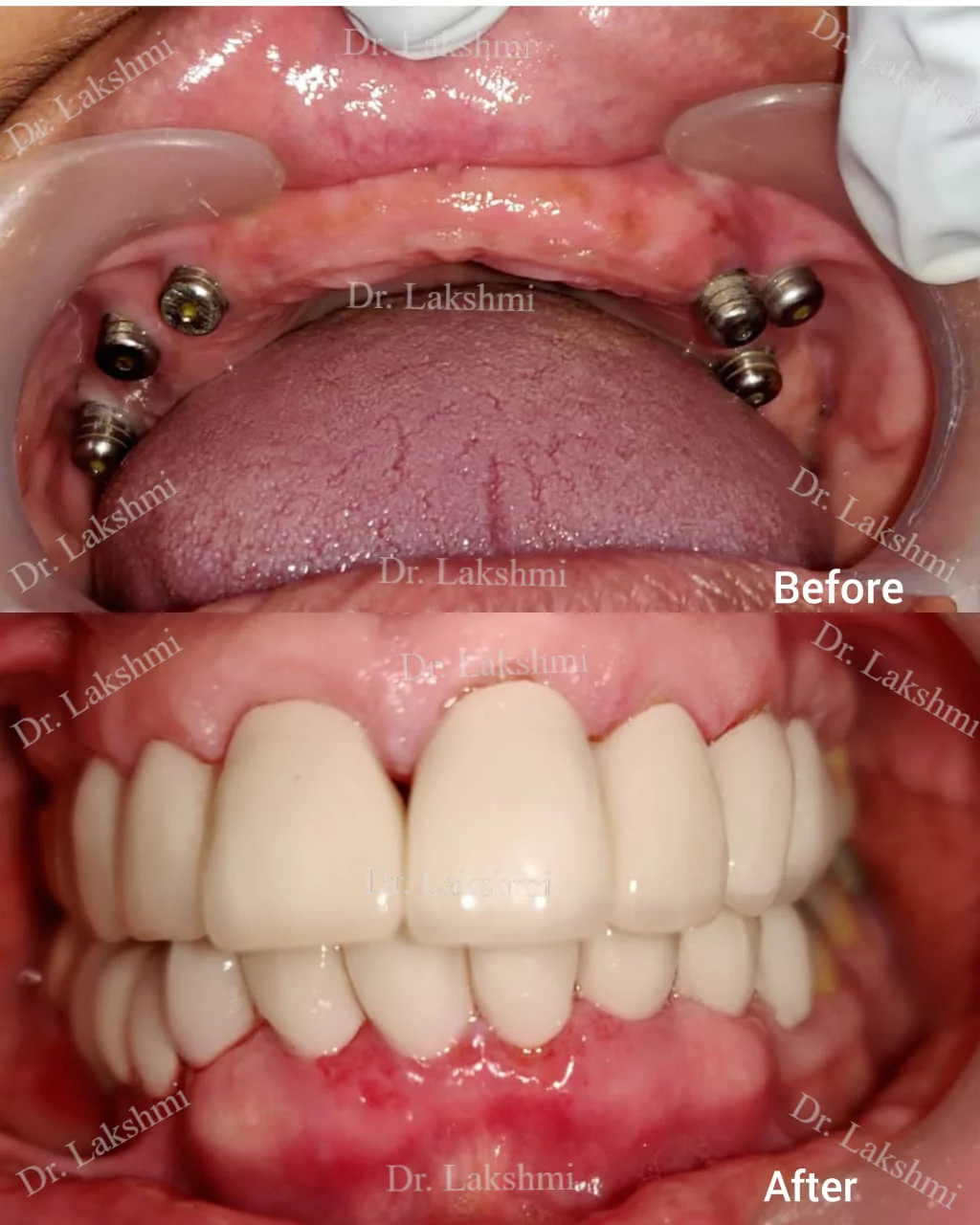 Multiple Tooth Replacement : Entirely depends on number of missing teeth.Either same number of Implants or fewer number of Implants than missing teeth can be placed. For example patient with 4 missing teeth ,we can place 2 Implants followed by a 4units bridge.
